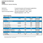 The grade exhibits low moisture absorption and excellent resistance to chemicals, including detergents, oils, and common industrial fluids. PP Y101 also demonstrates good thermal stability, allowing molded parts to maintain their shape and performance under typical service temperature conditions.